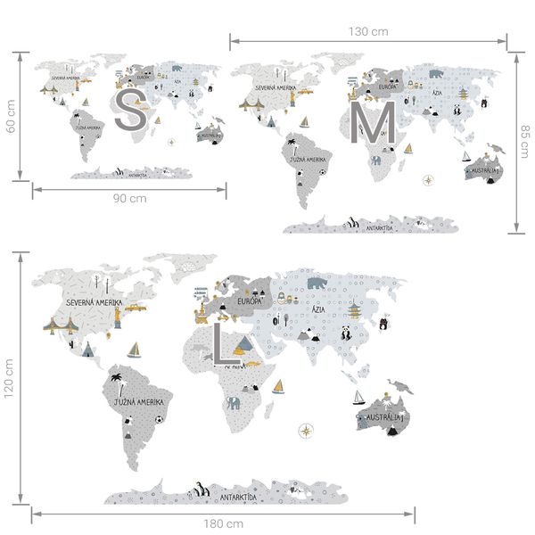 Pastelowe Love стикери за стена Карта на света в сив цвят (на словенски)