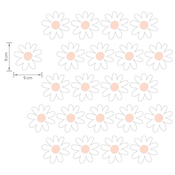 Комплект стикери за стена - стикерите с маргаритки могат да се подреждат свободно върху стената и да създават ефект на тапет. Предлагат се в една форма и един размер.Стикерите маргаритки са създадени за всички почитатели на нежните мотиви и естествените цветове. Благодарение на уникалната си форма те са идеални както за скандинавския, така и за бохо стила.