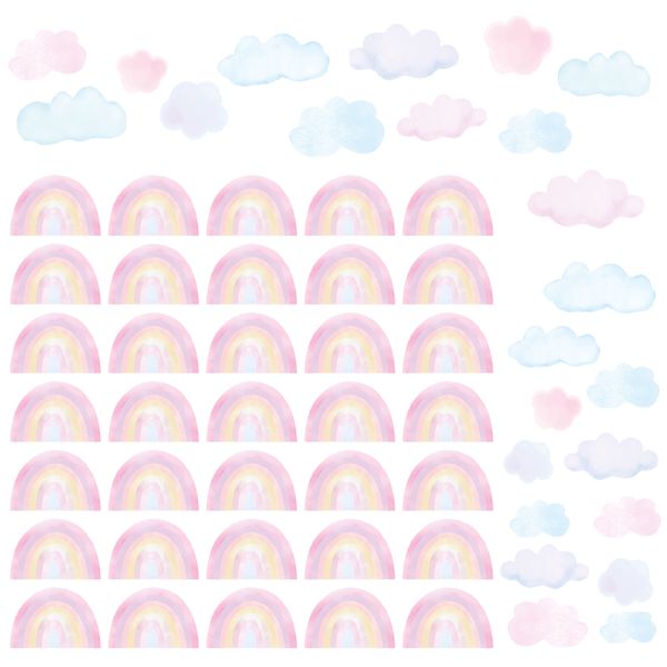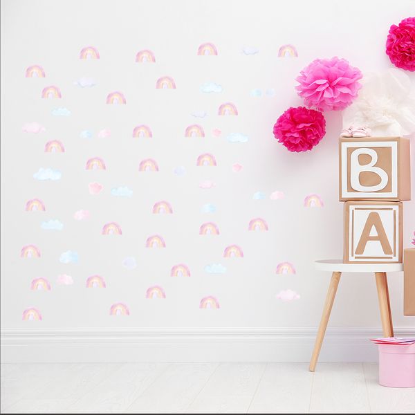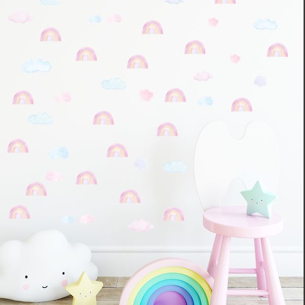 Акварелната дъга ще изглежда страхотно във всяка детска стая. Деликатните, наистина светли цветове придават на стената специален характер.