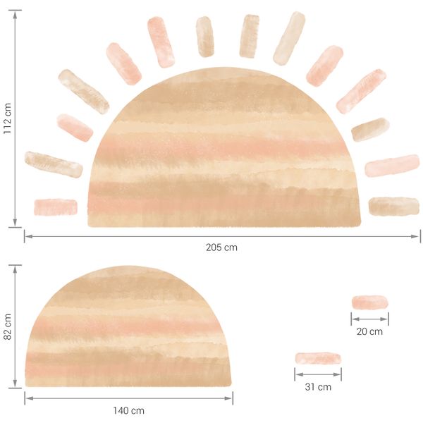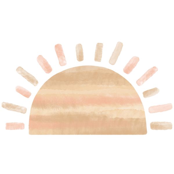 Красив стикер за стена с половин слънце за стаята на вашето дете. Този акварелен стикер за стена със слънце ще създаде прекрасно място в стаята на вашето дете.Създайте красива декоративна стена с този ръчно рисуван акварел. Перфектен за поставяне зад детско креватче или легло, или като елемент на всяка празна стена във всяко детско пространство изобщо! Той не само ще изглежда невероятно, но и ще предпази стената от замърсяване.