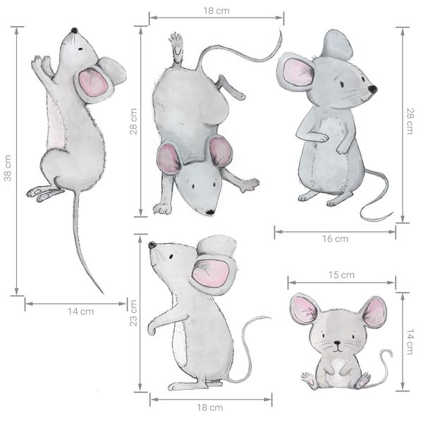 Мишките са специално изрязани по контур, което значително опростява нанасянето върху избраната повърхност и им придава изключително реалистичен вид. Ако имате котка в къщата, бъдете внимателни, тъй като тя може да започне да ловува!