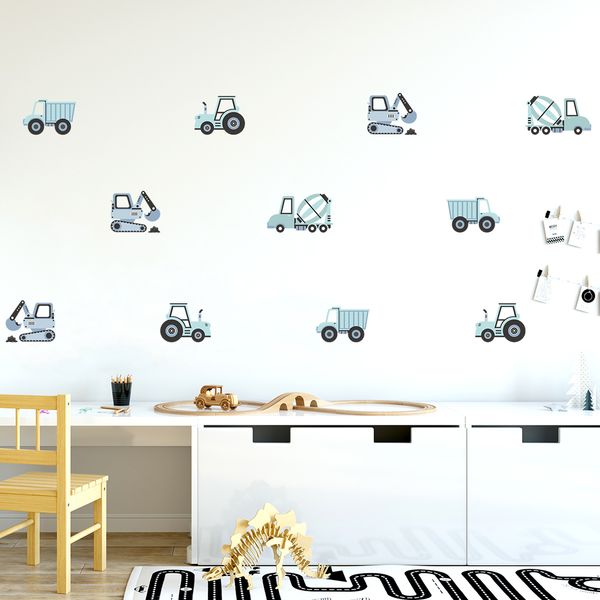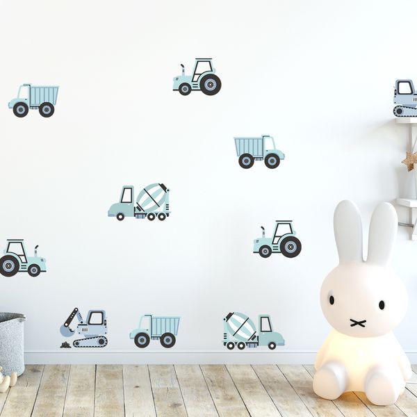 Превърнете стаята на детето си в истинска строителна площадка благодарение на серия стикери, които включват: багери, бетонобъркачки, трактори и самосвали.