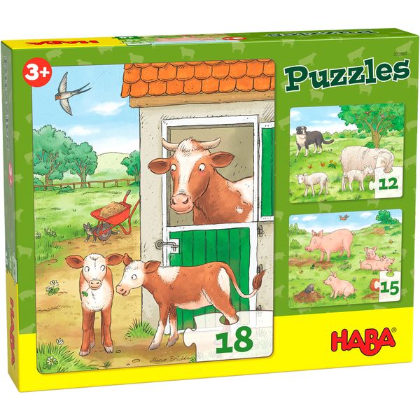ТРИ пъзела с различни картинки на семействата селскостопански животни, всяка една съответно с 12, 15 и 18 елемента. Децата се запознават с животните и разказват това, което предизвиква въображението им гледайки картинките.