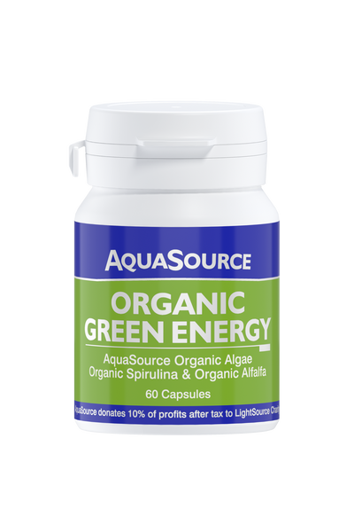 AquaSource Органична Зелена енергия комбинира три натурални съставки: суперхраната AquaSource органични водорасли, органична спирулина и сок от органична люцерна на прах, предназначени да спомагат за поддържане на оптимални енергийни нива, на имунната система и на нормалните когнитивни функции.